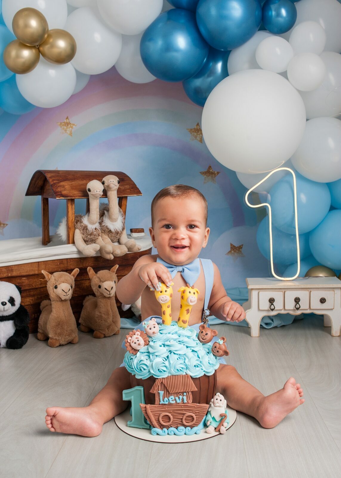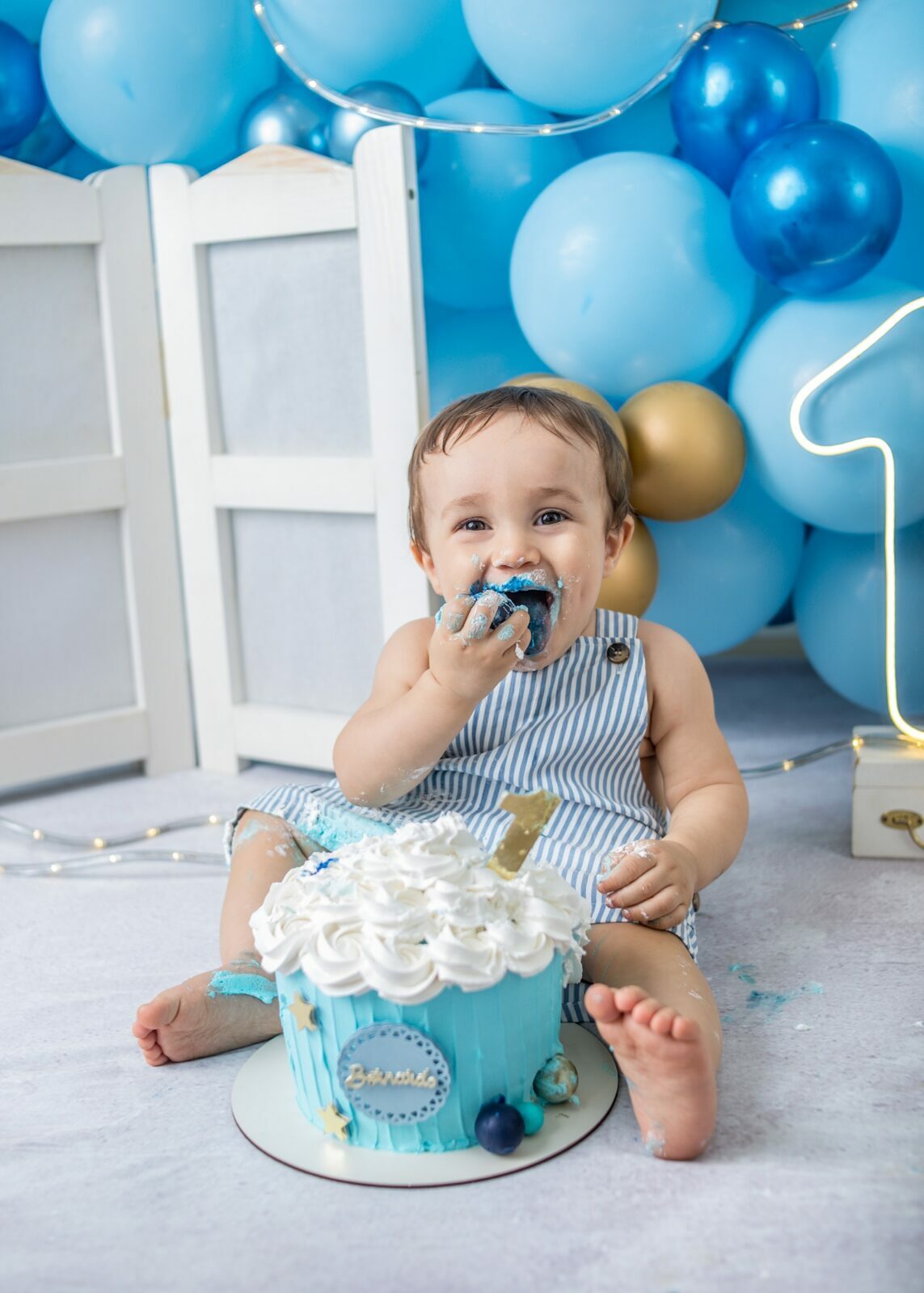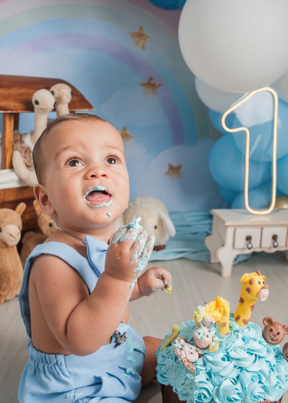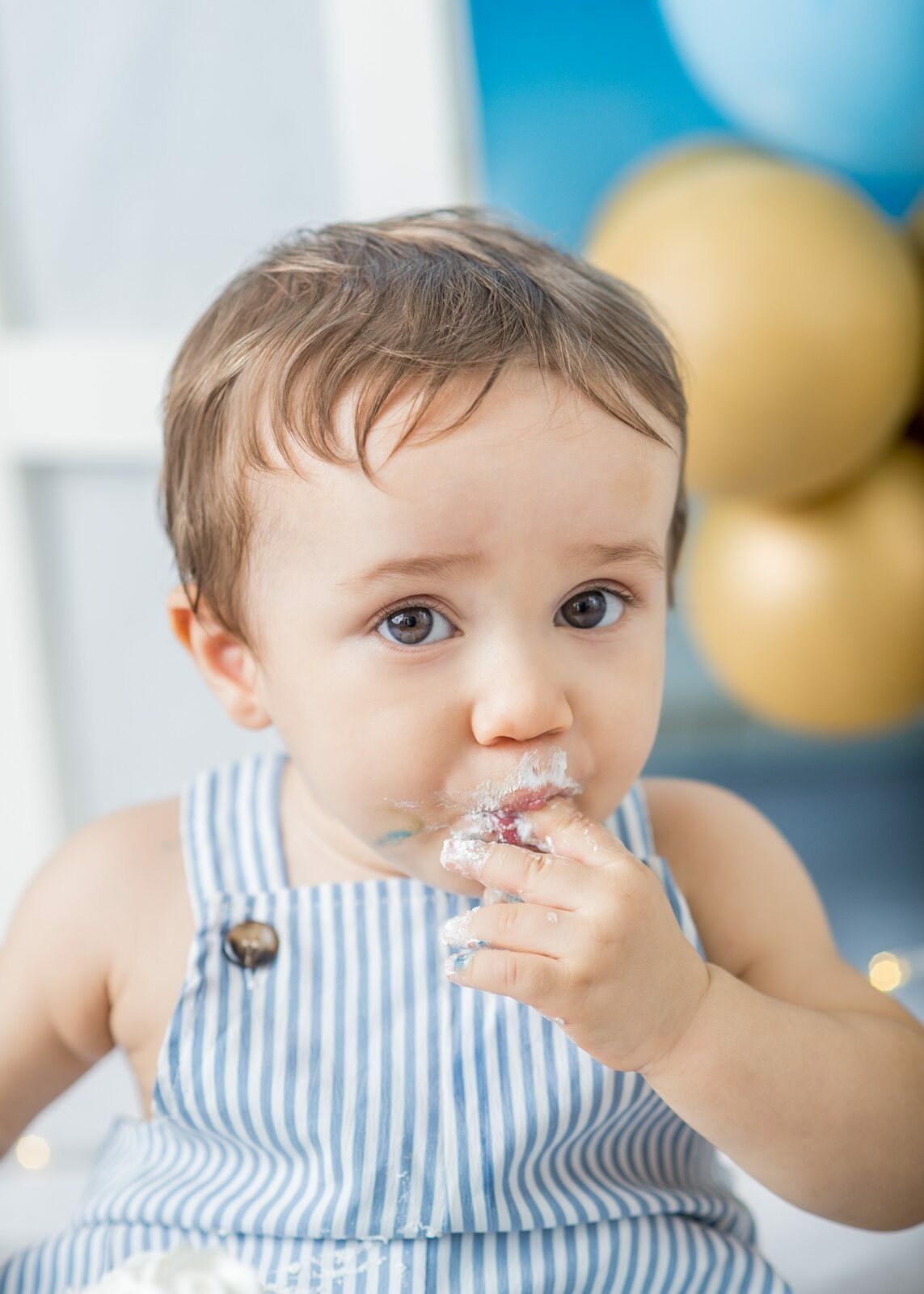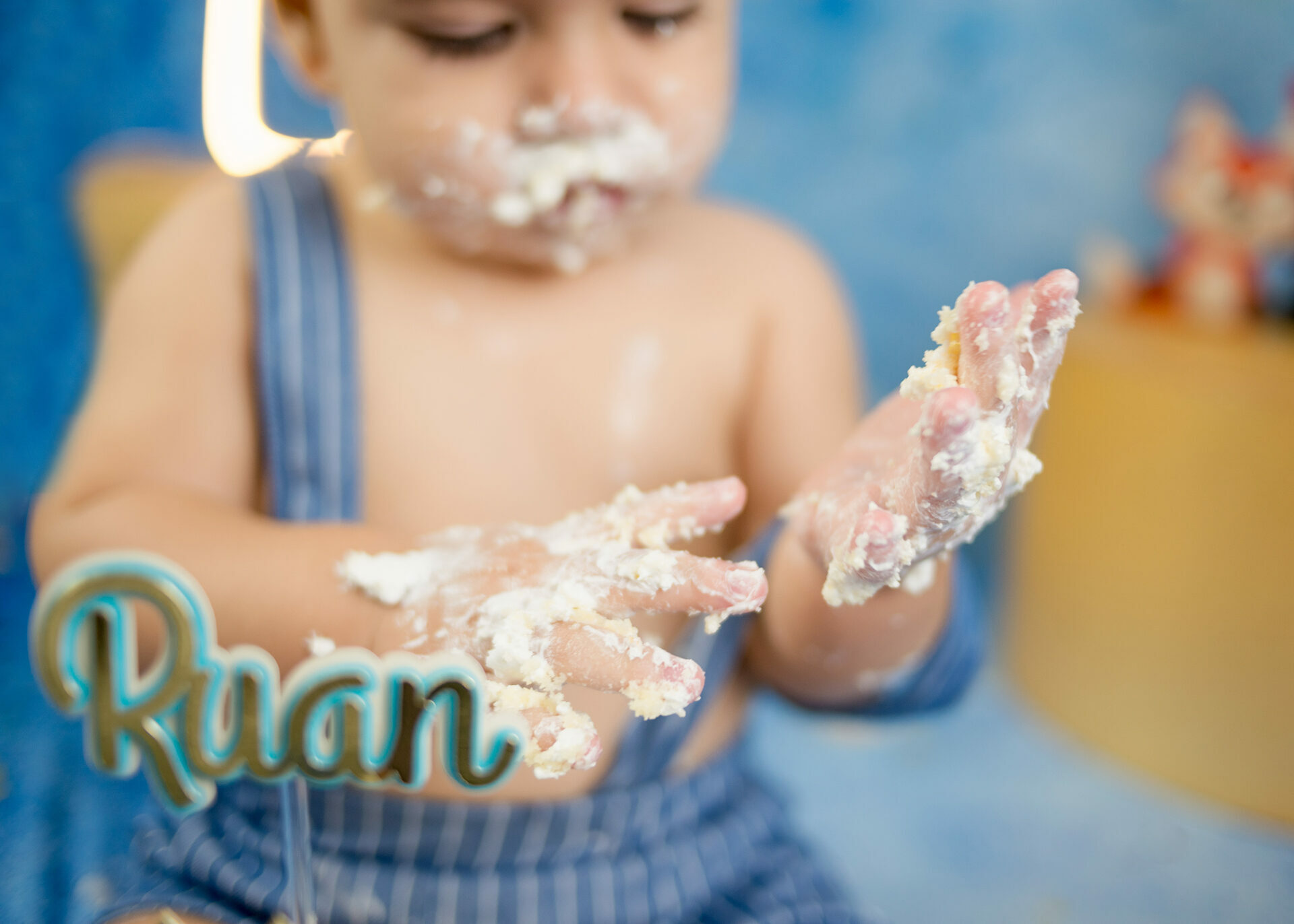 Gostamos de chamar o ensaio de “Primeiro Aniversário”, pois o ensaio Smash the Cake não é sobre se lambuzar ou destruir o bolo e sim sobre ter um registro desta fase tão importante na vida do seu filho. Um ensaio lúdico, uma experimentação do novo e do diferente para registrar as carinhas fofas e as reações dos bebês!