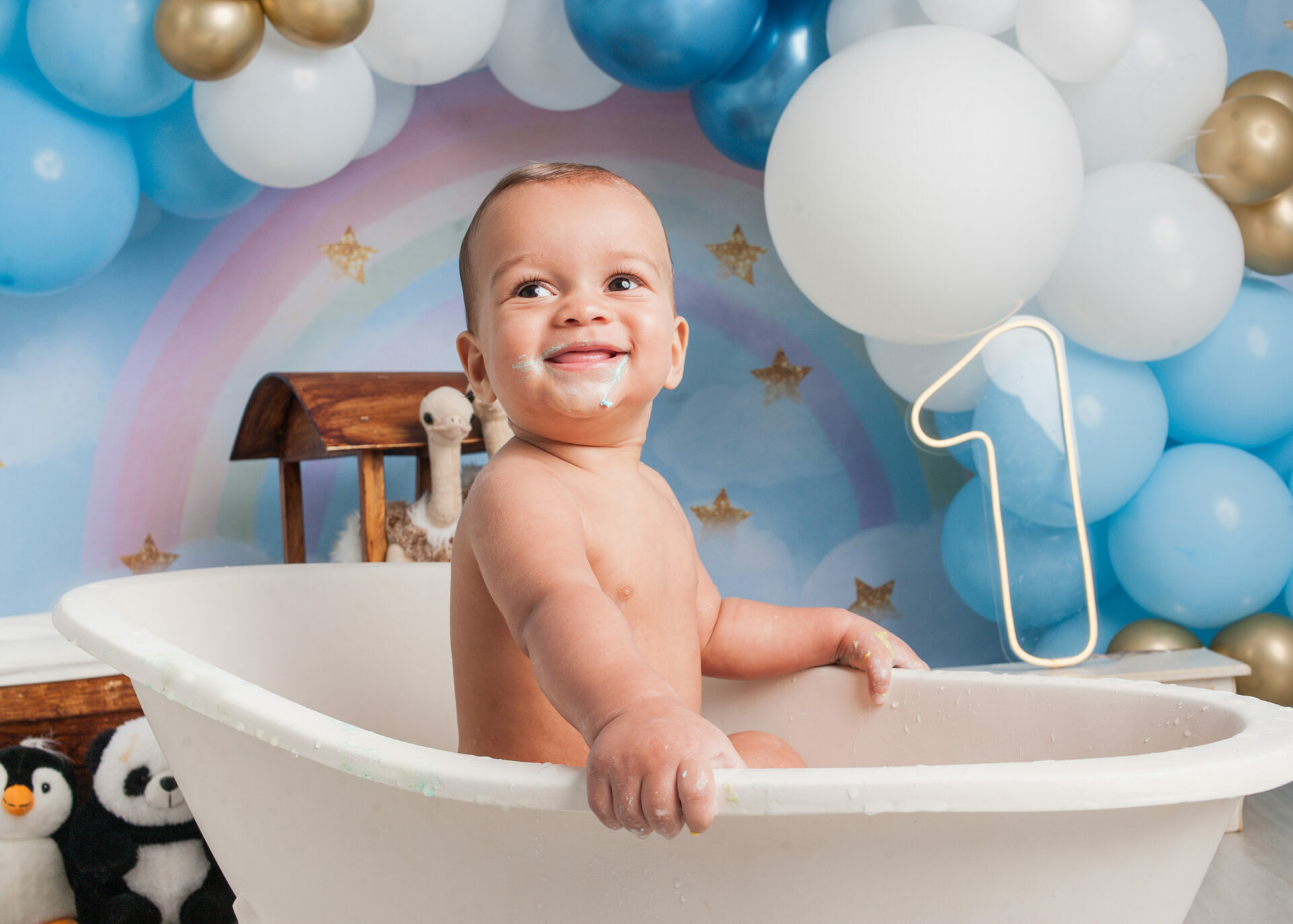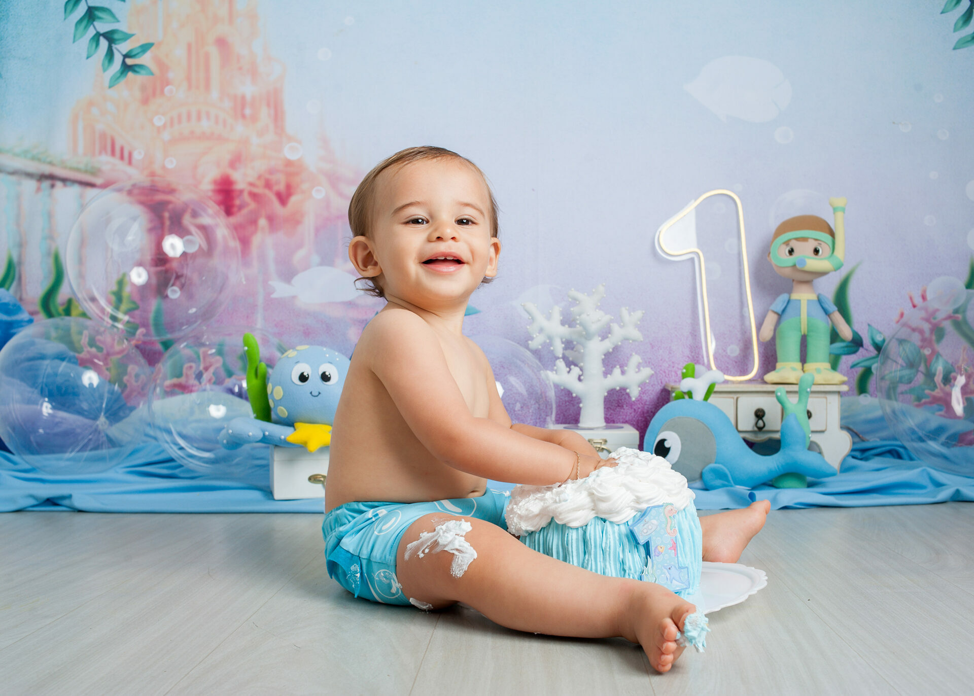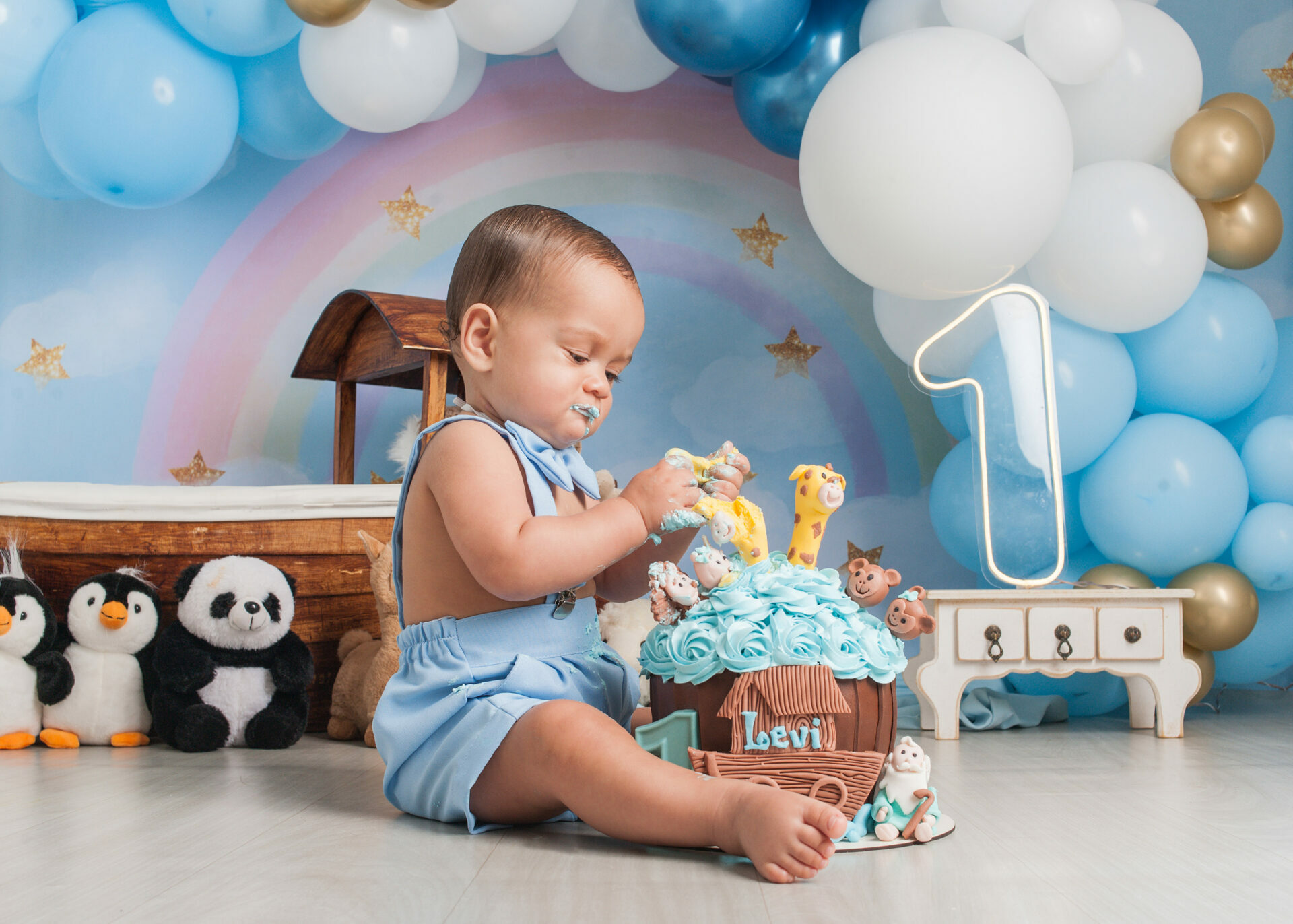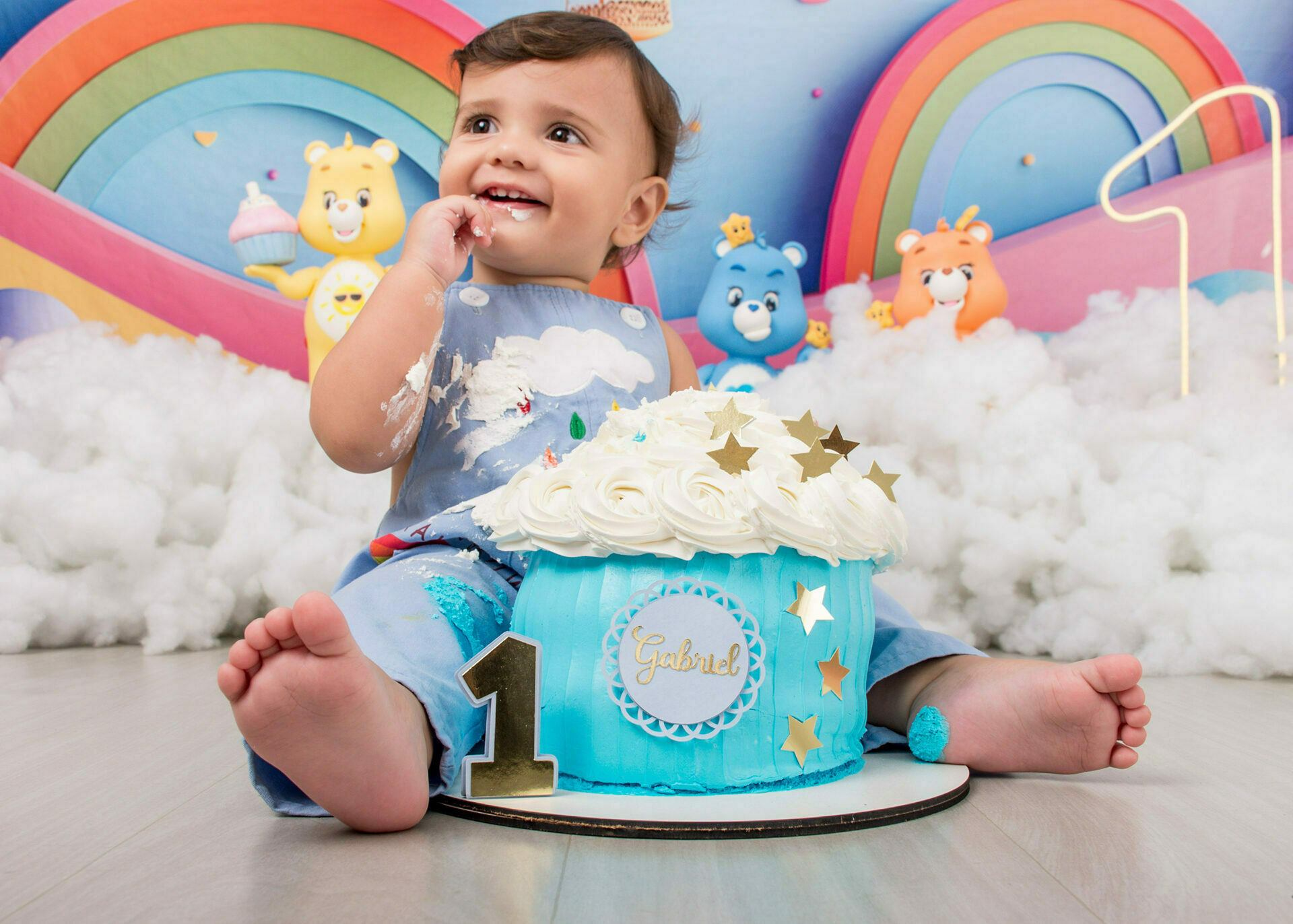 Gostamos de chamar o ensaio de “Primeiro Aniversário”, pois o ensaio Smash the Cake não é sobre se lambuzar ou destruir o bolo e sim sobre ter um registro desta fase tão importante na vida do seu filho. Um ensaio lúdico, uma experimentação do novo e do diferente para registrar as carinhas fofas e as reações dos bebês!
