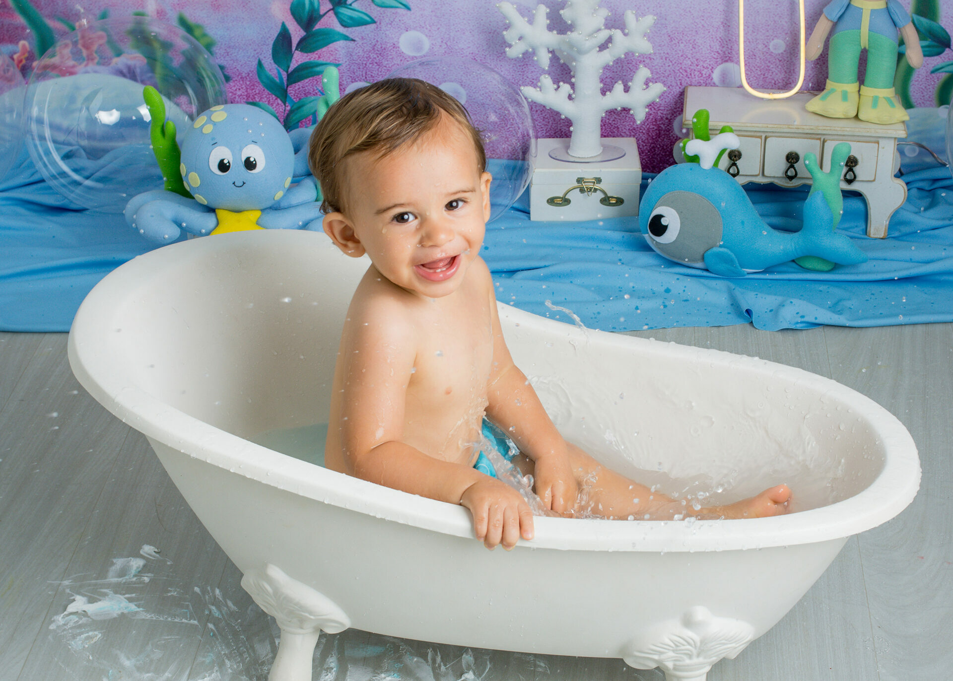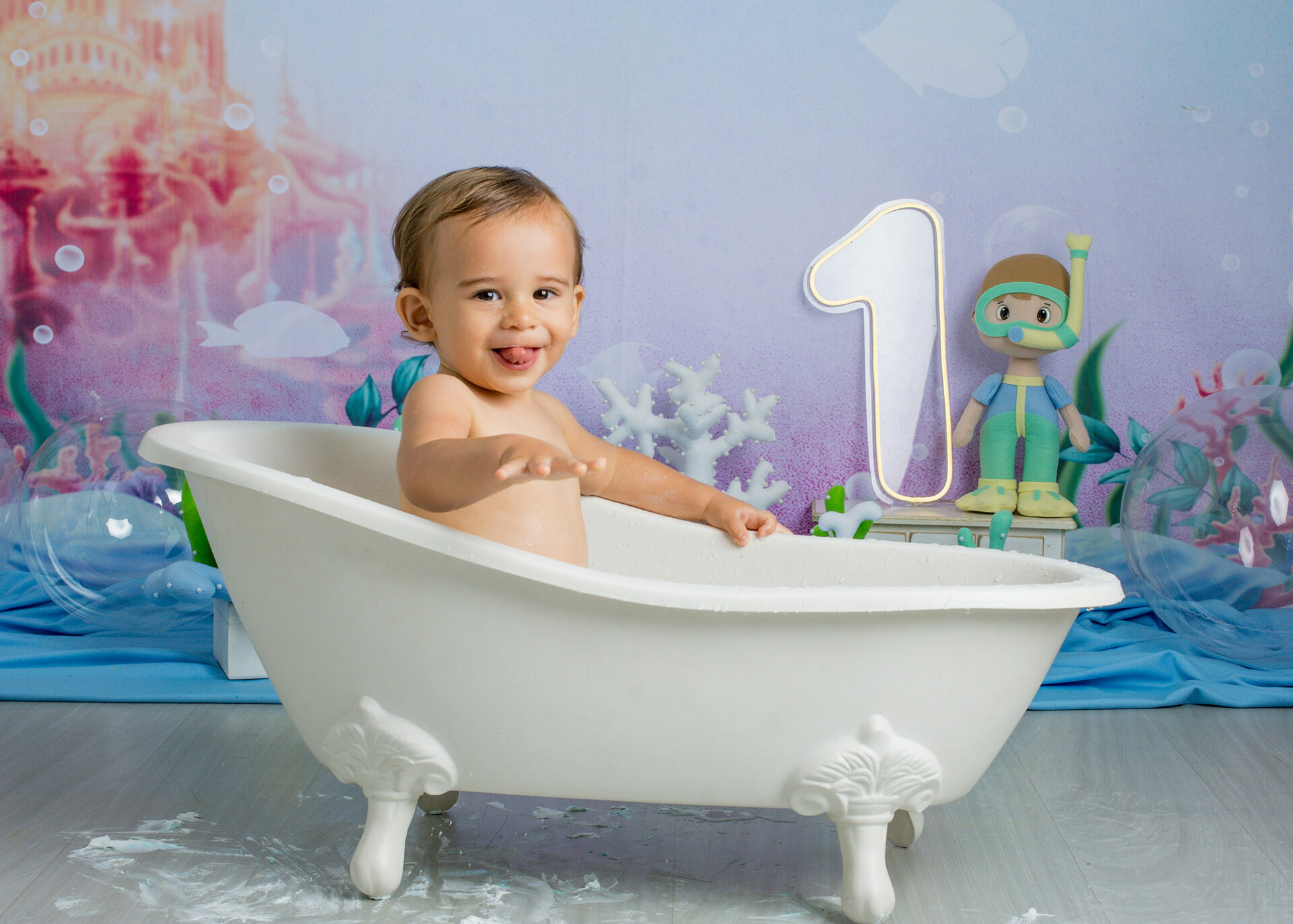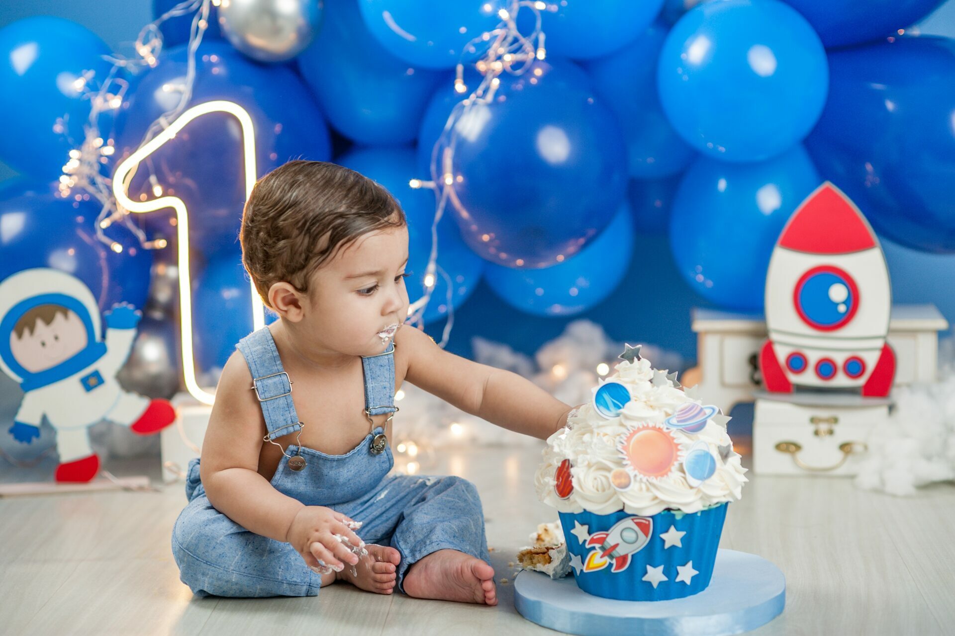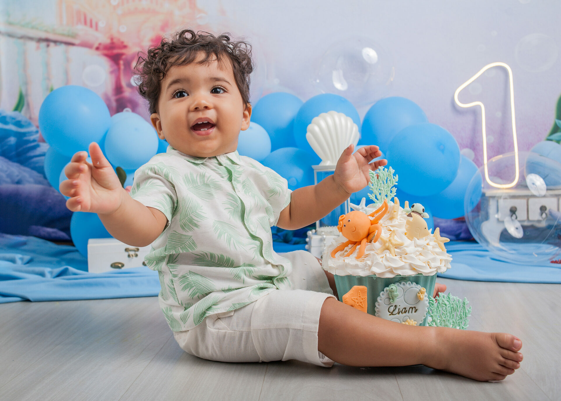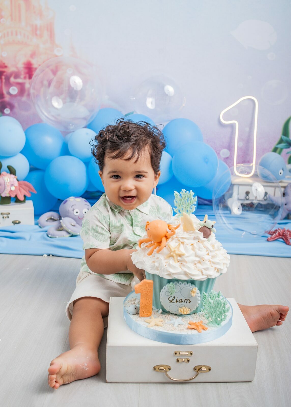 Gostamos de chamar o ensaio de “Primeiro Aniversário”, pois o ensaio Smash the Cake não é sobre se lambuzar ou destruir o bolo e sim sobre ter um registro desta fase tão importante na vida do seu filho. Um ensaio lúdico, uma experimentação do novo e do diferente para registrar as carinhas fofas e as reações dos bebês!