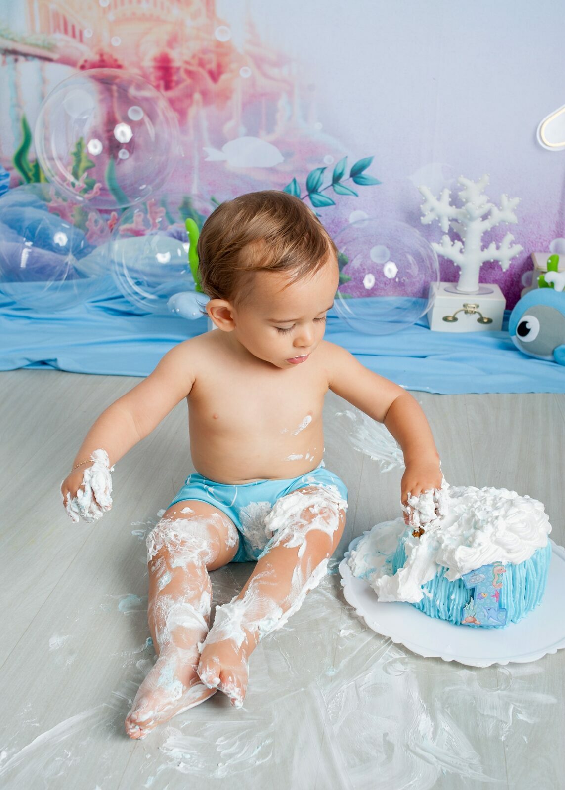 O Smash the Cake é um ensaio de fotos divertidas, geralmente perto do aniversário de 1 ano da criança. O diferencial desse ensaio é que o bebê vai experimentar o bolo com as mãozinhas e sentir um alimento novo pela primeira vez. Tanto é que, nessas fotos, você verá muitas caretas, sorrisos e mãos lambuzadas.